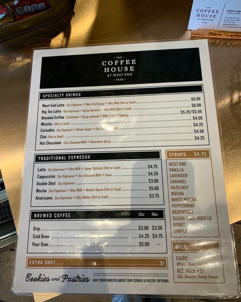 With accommodating utilities like QR code menus, gender-neutral restrooms, and a dog-friendly atmosphere, The Coffee House at West End is truly a gem in Houston’s vibrant café scene. Visit soon to indulge in their exceptional beverages and delightful atmosphere!